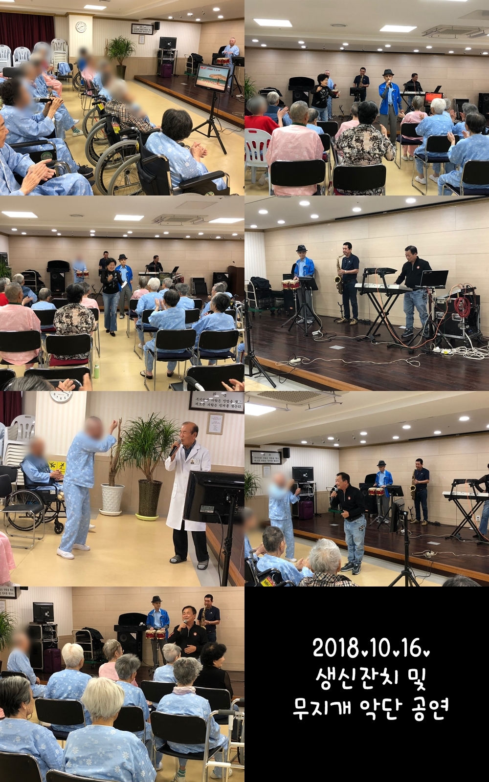 2018년 10월 16일 (화) 오후 2시에 본원 강당에서 10월 어르신 생신잔치와 함께 무지개 악단의 공연행사를 열었습니다.