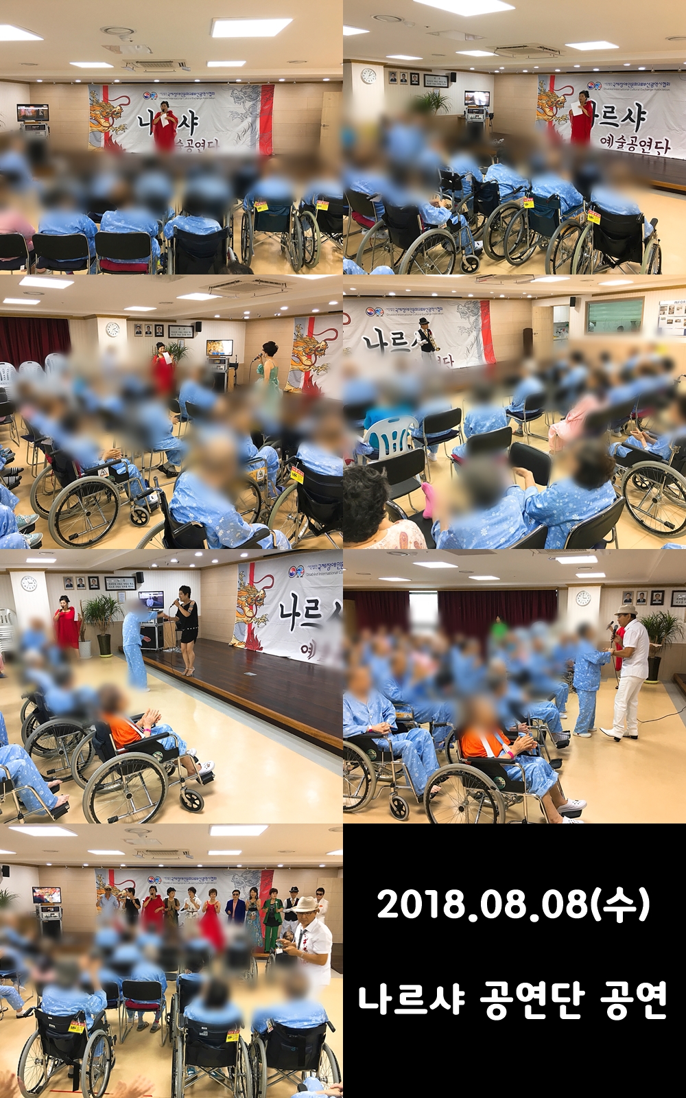 [병원복지] 8월 나르샤 예술단 공연 본문 2018년 8월 8일 (수) 나르샤 예술단의 공연 행사가 있었습니다. 오늘은 더욱더 흥겨운 분위기로 어르신들이 공연단 분들과 함께 춤도 추고 박수도 많이 치셨습니다~~^^ 이전글 목록 다음글