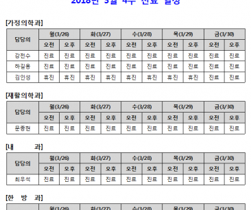 [안내] 3월 4주 진료일정