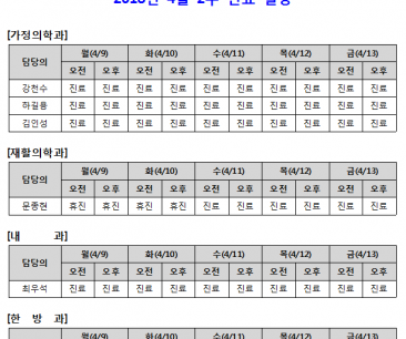 [안내] 4월 2주 진료일정