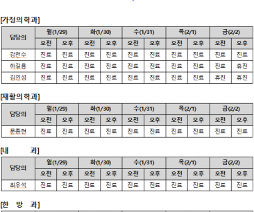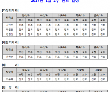 [안내] 1월 2주 진료 일정