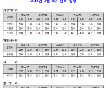 [안내] 2월 3주 진료 일정