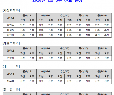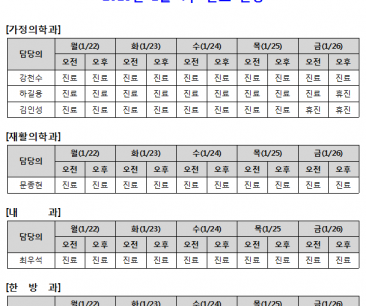 [안내] 1월 3주 진료일정