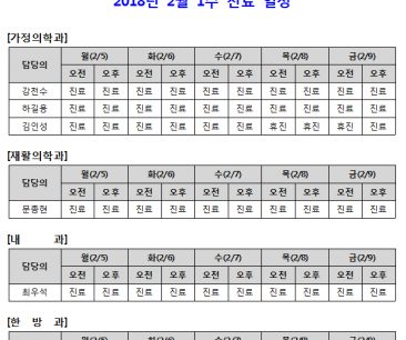 [안내] 2월 1주 진료 일정