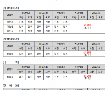 [안내] 2월 2주 진료 일정