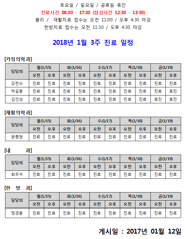 [안내] 1월 3주 진료일정