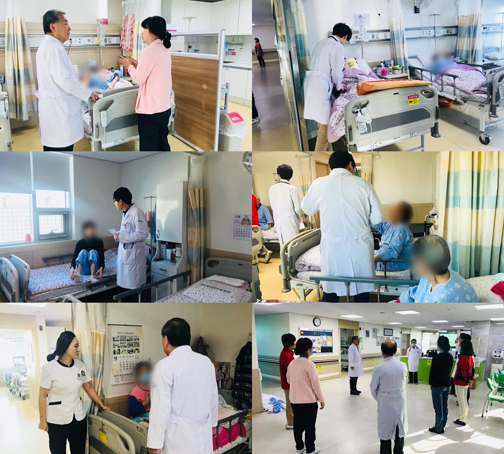 [안내] 12월 1주 라운딩 본문 환자안전 문화조성과 개선황동을 격려하기 위해 매주 수요일마다 라운딩을 실시하고 있습니다. 최상의 의료서비스를 제공하기 위해 더욱 더 노력하는 영도참편한요양병원 직원들이 되겠습니다. 이전글 목록 다음글