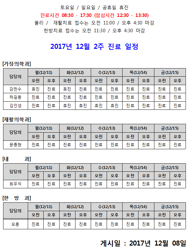 [안내] 12월 2주 진료 일정