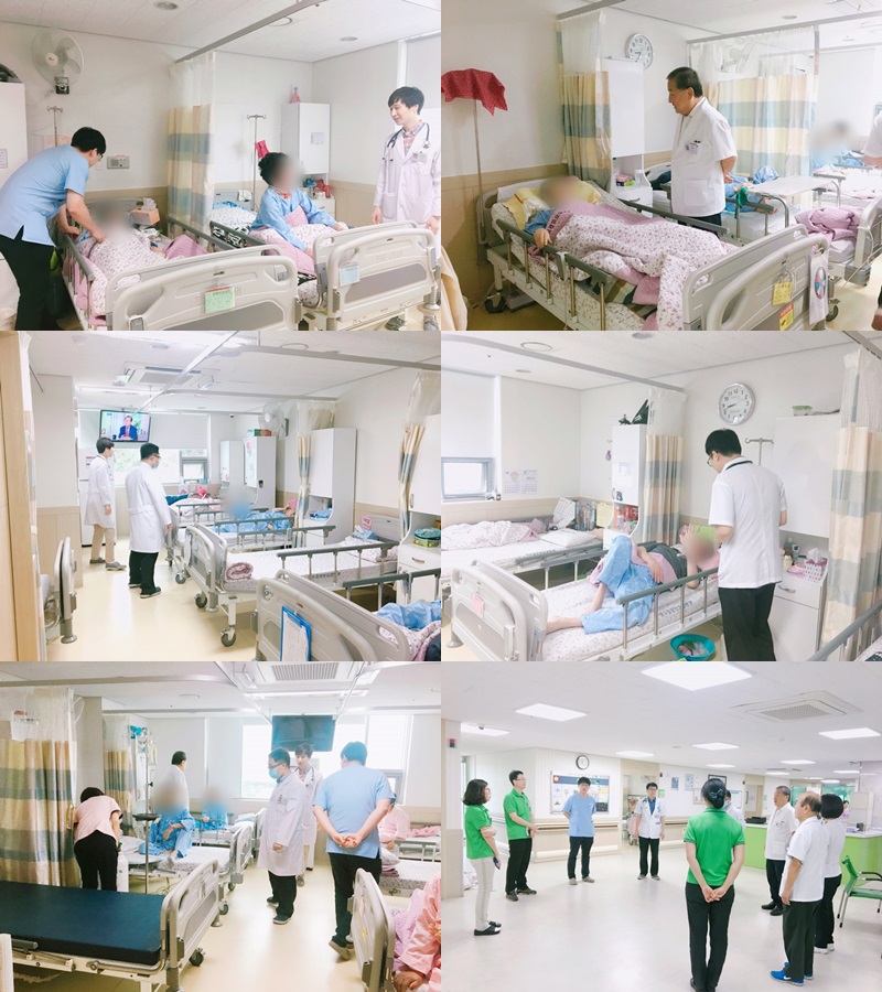 [안내] 8월 5주 라운딩 실시 본문 환자안전 문화조성과 개선황동을 격려하기 위해 매주 수요일마다 라운딩을 실시하고 있습니다. 최상의 의료서비스를 제공하기 위해 더욱 더 노력하는 영도참편한요양병원 직원들이 되겠습니다. 이전글 목록 다음글