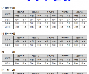 [안내] 2017년 6월 2째주 진료 일정