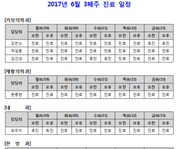 [안내] 2017년 6월 3째주 진료 일정