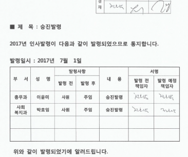 [안내] 직원 인사 발령 공고