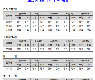 [안내] 2017년 6월 4주 진료 일정