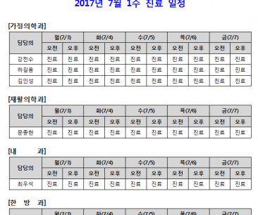 [안내] 2017년 7월 1주 진료 일정