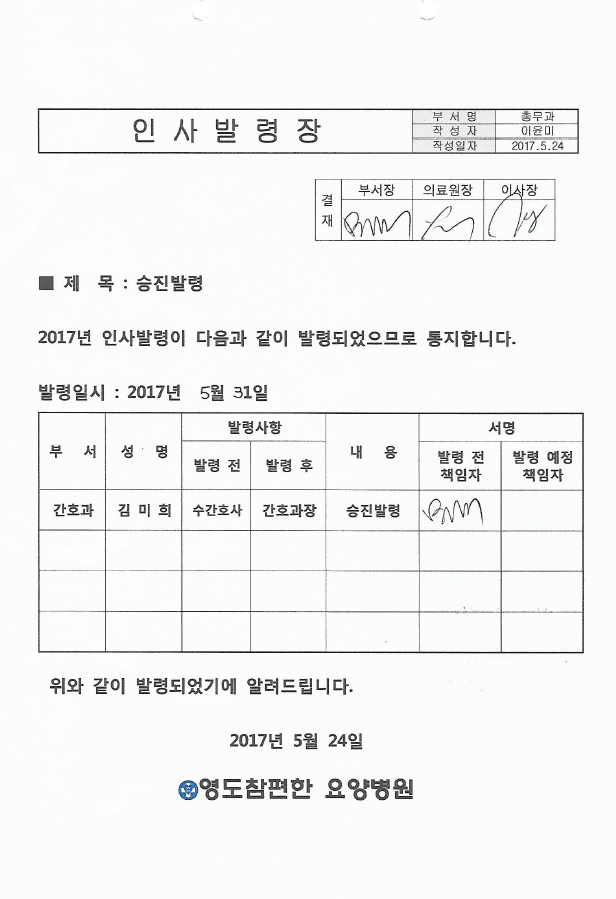 최상의 의료서비스를 제공하기 위해 더욱 더 노력하는 영도참편한요양병원 직원들이 되겠습니다.