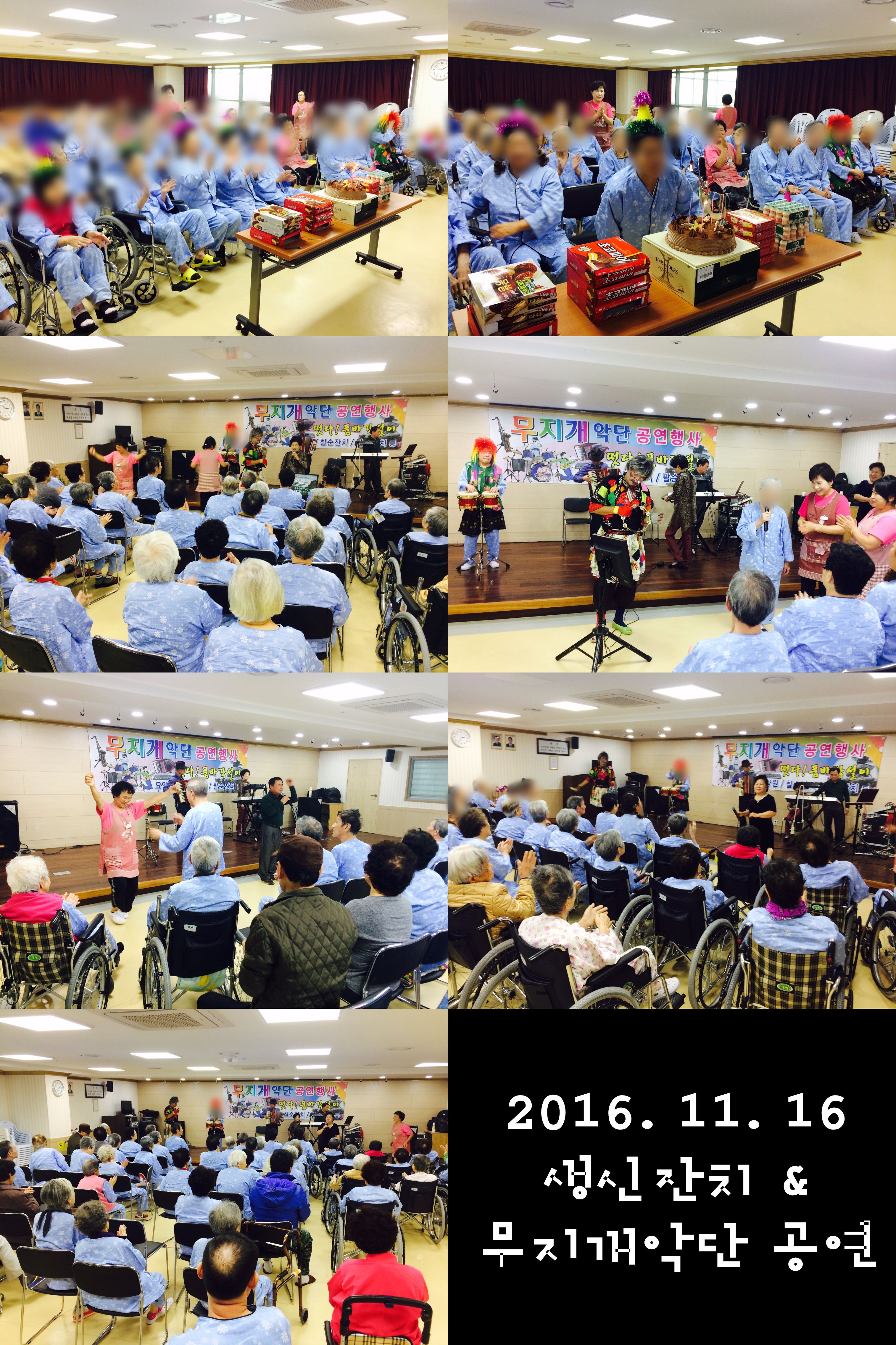 2016년 11월 16일 (수) 오후 2시에 본원 강당에서 11월 어르신 생신잔치와 함께 무지개 악단의 공연행사를 열었습니다.