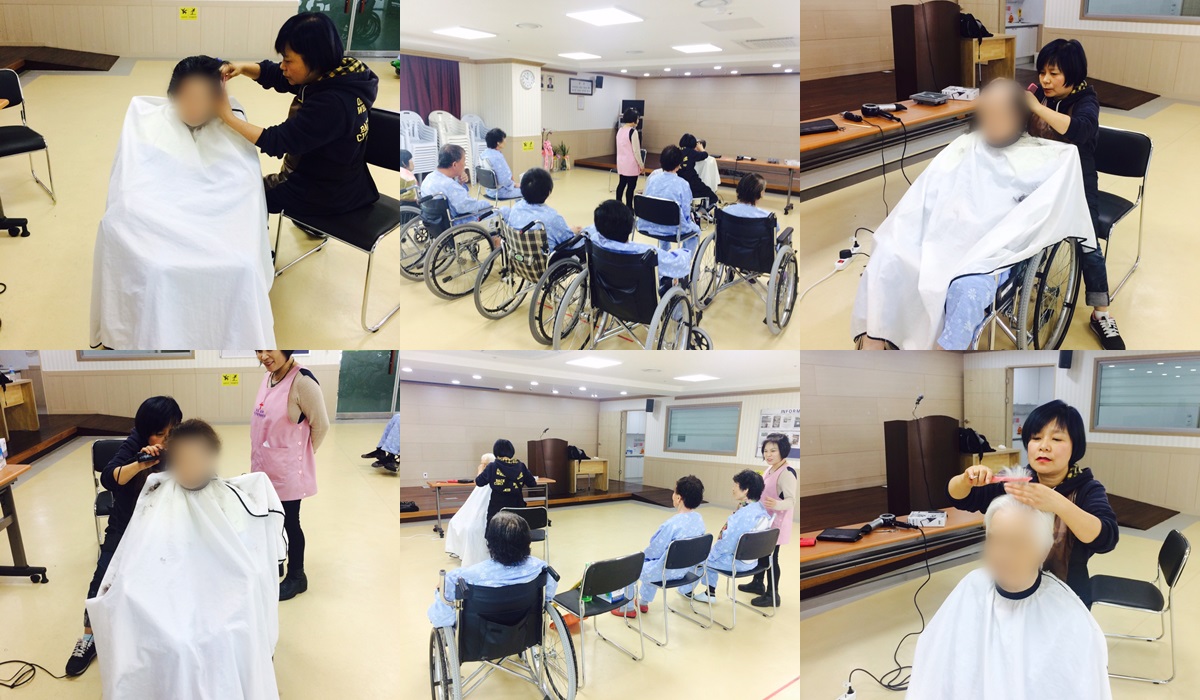 [병원복지] 12월 이미용봉사 본문 2016년 12월 07일 (수) 오전, 이미용 봉사자분이 오셔서 이미용 봉사를 하였습니다. 미용 봉사자분들께서 2, 3, 4병동에 계신 어르신들의 머리를 예쁘게 잘라주셨습니다. 바쁜시간에도 불구하고 열심히 봉사해주신 봉사자께 다시한번 감사인사드립니다. 이전글 목록 다음글
