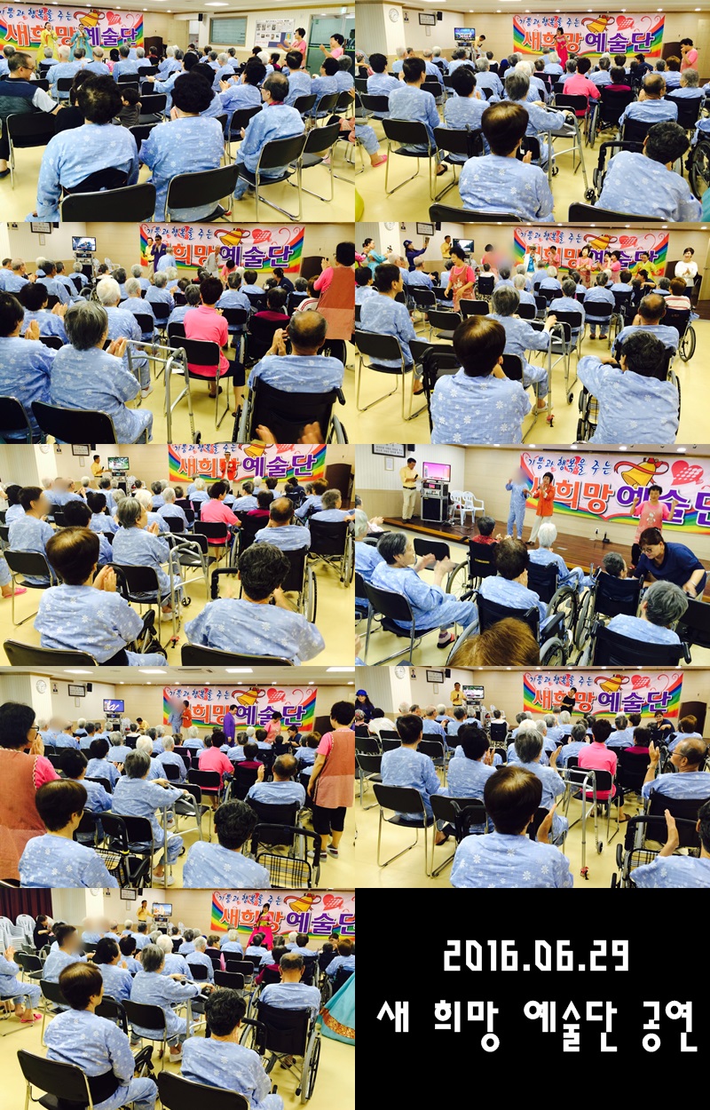 [병원복지] 6월 새희망 예술단 공연 본문 2016년 6월 29일 새희망 예술단의 공연 행사가 있었습니다. 단원분들의 다양한 공연(색소폰, 트럼펫)들과 신나는 노래(민요, 가요)들로 꾸며진 무대로, 어르신들이 한껏 흥이 나셔서 즐거워하셨습니다. 즐겁게 해주신 새희망 예술단에게 다시한번 감사인사드립니다^^ 이전글 목록 다음글