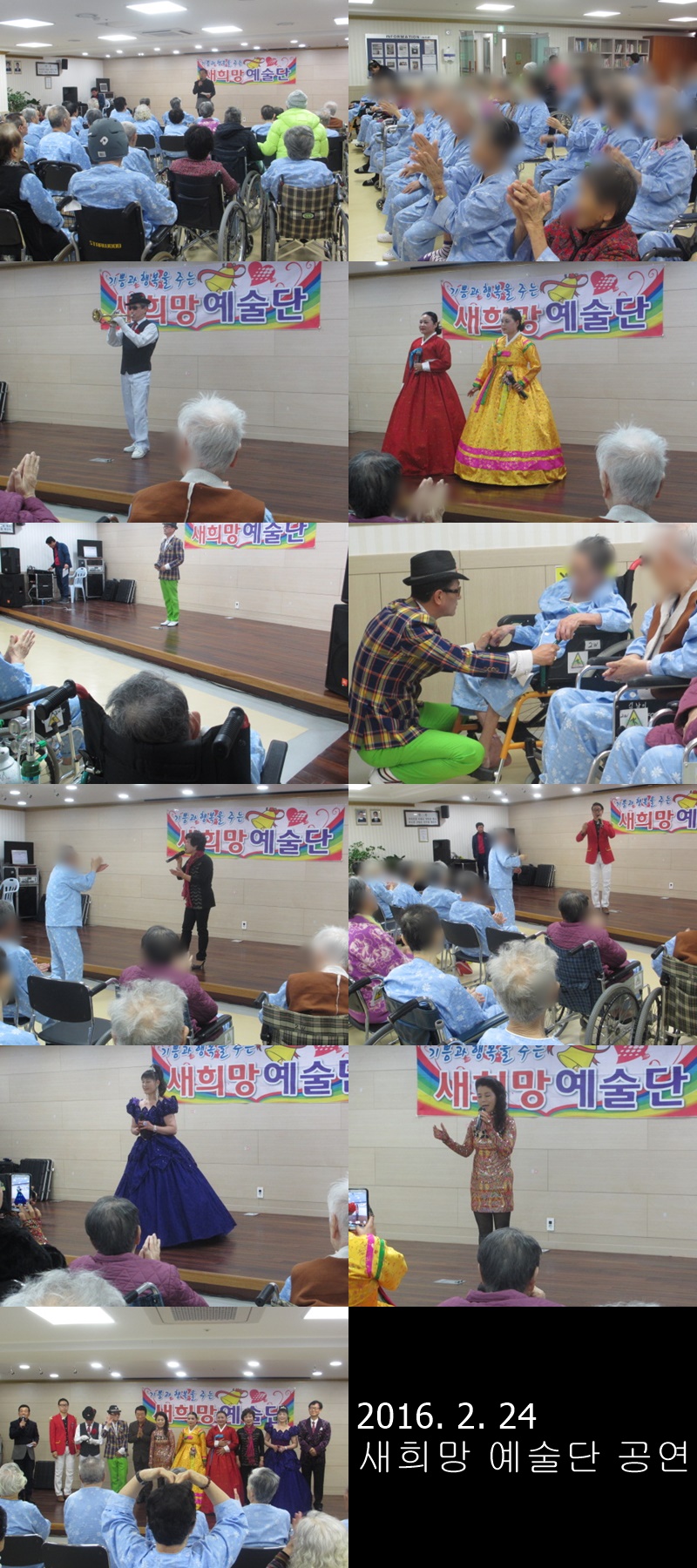 [병원복지] 새희망 예술단 공연 행사 본문 2016년 2월 24일 새희망 예술단의 공연 행사가 있었습니다. 2병동에 계시는 어머님의 아드님이 계시는 공연단의 행사여서 더욱 의미있는 공연이 되었습니다. 어머님, 아버님들을 즐겁게 해주신 새희망 예술단 단원분들에게 다시한번 감사인사를 드립니다. 이전글 목록 다음글