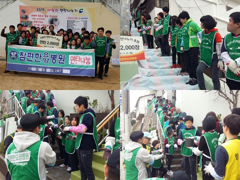 본문성원의료재단의 직원들이 지난 11월 21일 서구 남부민동 일대에서 부산 서구 사랑의 띠잇기 봉사단 후원회가 주최한 '사랑의 연탄나누기 행사'에 참여 하였습니다. 연탄 2000장 후원 및 감천 참편한요양병원 / 영도참편한요양병원 직원들도 동참하여 연탄 배달을 돕기도 하였습니다. 지역사회 내 어려운 이웃들이 따뜻한 겨울을 보낼 수 있도록 작은 정성을 보태었습니다. |