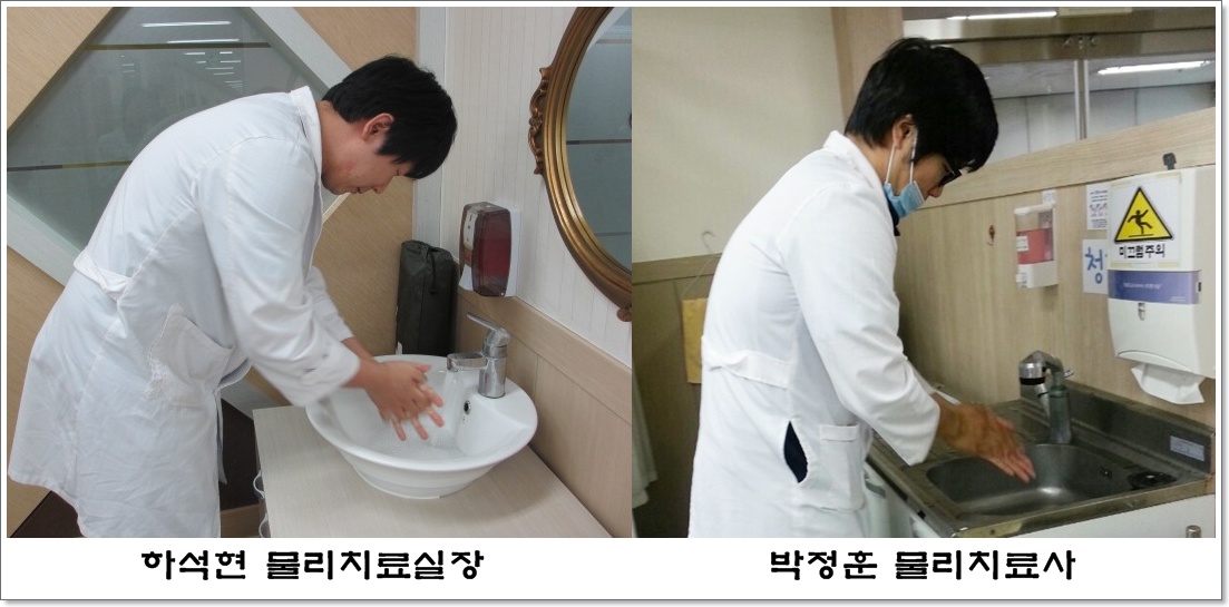 [직원복지] 손 위생 수행 모범직원 시상 본문 2014년 1년 동안 손 세정 검사기로 직원들을 대상으로 하여 손 세정 검사를 실시하였습니다. 이 중 우수한 직원을 뽑아 2015년 4월 10일 직원 금요교육 시작 전 시상을 진행했습니다. 2015년에도 지속적으로 손세정 검사를 실시 할 예정입니다. 수상자 : 영도병원 하석현 물리치료실장, 감천병원 박정훈 물리치료사 이전글 목록 다음글