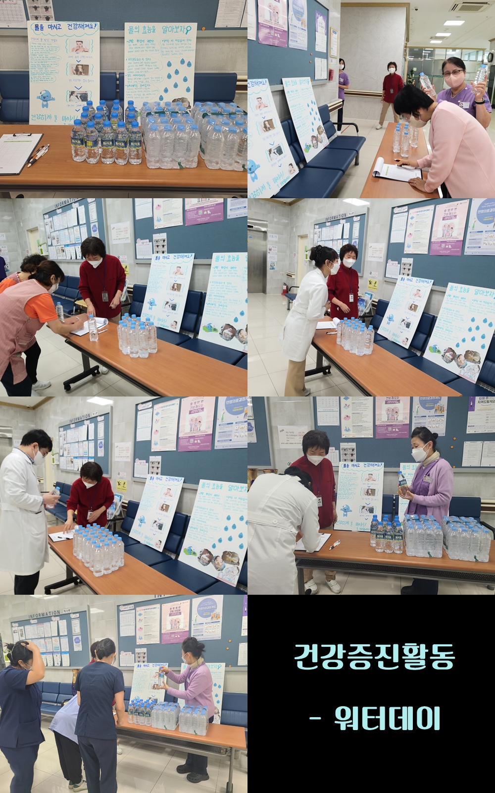 [안내] 건강 증진 활동(워터데이) 본문 * 주제 : 건강 증진 활동(워터데이)* 행사일시 : 2023년 12월 06일(수)* 행사시간 : 12:00 ~ 13:00* 행사장소 : 로비층 이전글 목록 다음글