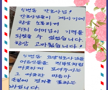 [참편한소식] 보호자분께서 적어주신 감사편지 내용입니다.