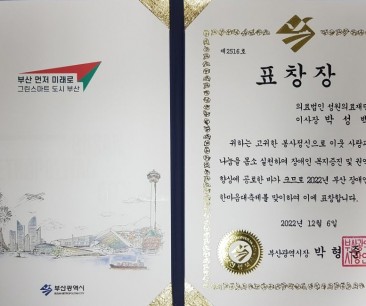 [안내] 2022년 부산 장애인 한마음대축제 박성백 이사장 표창장 수상