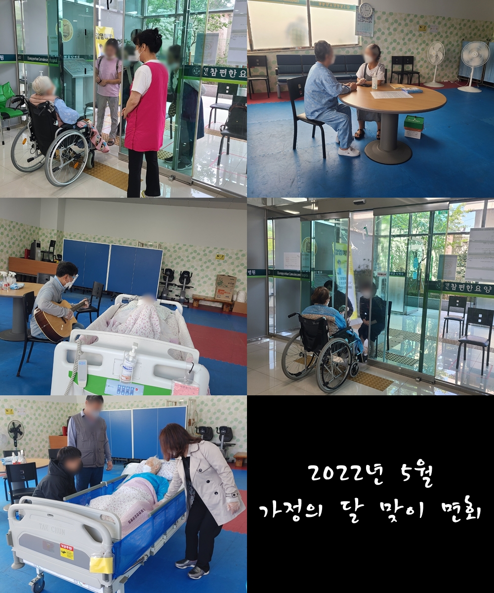 본원에서는 가정의 달을 맞이하여 접종여부 또는 기확진여부에 따라 대면면회 및 비대면면회를 진행하고 있습니다.