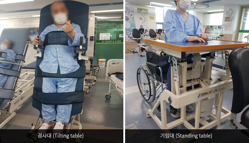 매트 훈련, 이동 훈련, 경사대 (Tilting table) 훈련 및 의자 차 훈련을 위하여 서기나 보행 전 단계에 매트에서 이루어지는