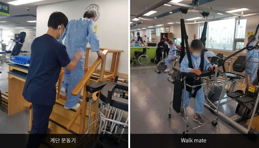 상태에서 동작의 난이도를 조절하며 보행 연습을 하는 치료 프로그램입니다. 독립적으로 보행이 힘든 환자에게 낙상의