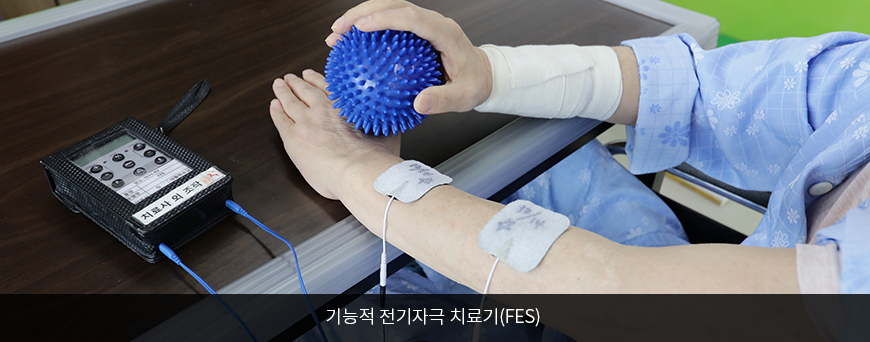 중추 신경계 손상과 근골격계 질환으로 인해 마비나 약화된 근육에 기능적 전기자극을 주어 신경근 재교육 및 위축과 경직을