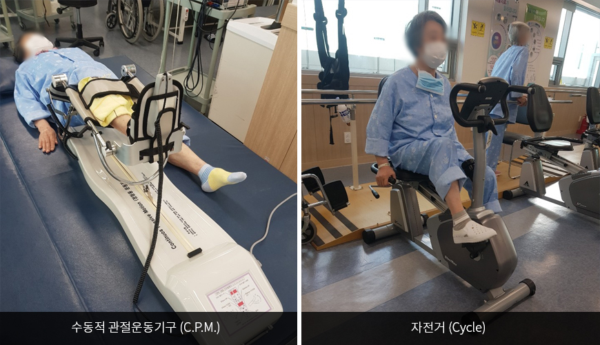 토대로 각종 기구(CPM, NK table, 싸이클 등)을 이용하여 맞춤운동치료를 시행합니다.