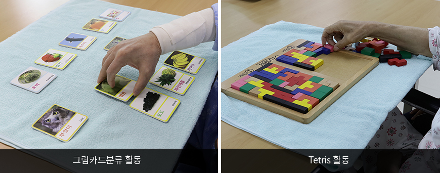 지각, 인지영역에 손상을 입은 환자를 대상으로 집중력, 기억력, 판단력, 계산능력, 문제 해결능력 등의 향상을 도모하며 손상된 영역에 대해 보완기술 훈련을 시행합니다.
